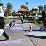 The Colorado River State Historic Park hosted its annual Sidewalk Chalk Art Contest on Saturday morning. Participants of all ages used chalk to create art on a sidewalk square, as individuals or as families, judged for their creativity and skill by local artists.